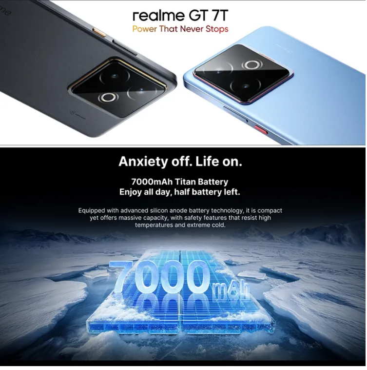 - 7000mAh Titan Battery (120W Ultra Charge - 100% charged in 42mins | Long-life Battery Chip | 2 Days Moderate Usage | 3 Days Light Usage | 7hours Play 120 FPS Massive online FPS game)