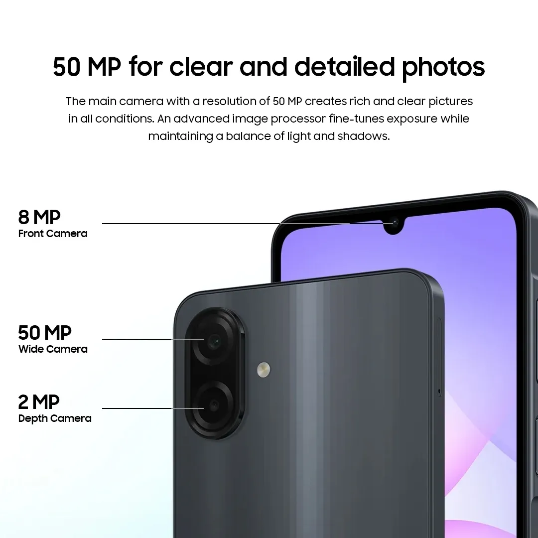 • 50MP Main Camera + 2MP Macro Lense + 8MP Front Camera