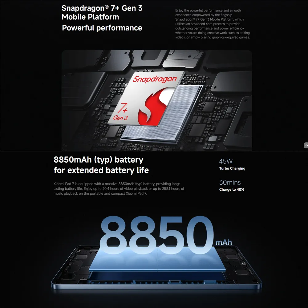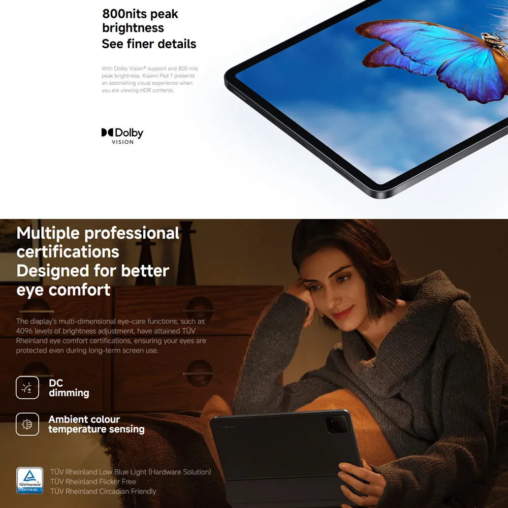 3.2K 144Hz crystal-clear display11.2"3:23200 x 2136, 345 ppiUp to 144HzUp to 360Hz 240Hz (with pen)800 nits peak brightnessTÜV Rheinland Low Blue Light (Hardware Solution) *The screen supports a maximum refresh rate of 144Hz. The screen refresh rate may be slightly different under different application interfaces and game image qualities. Please refer to the actual experience.