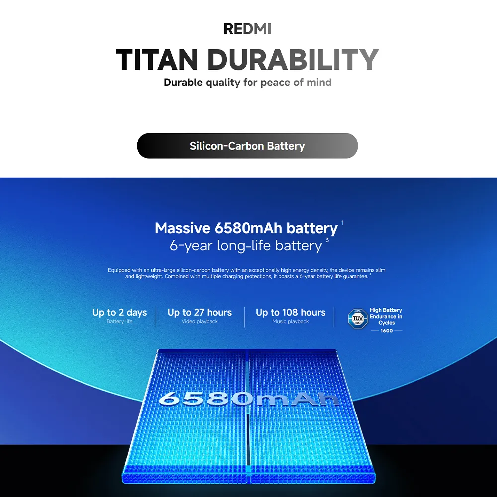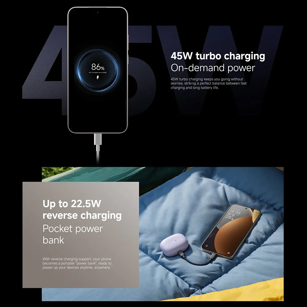 - 6580mAh(typ) battery45W turbo charging45W In-box charger